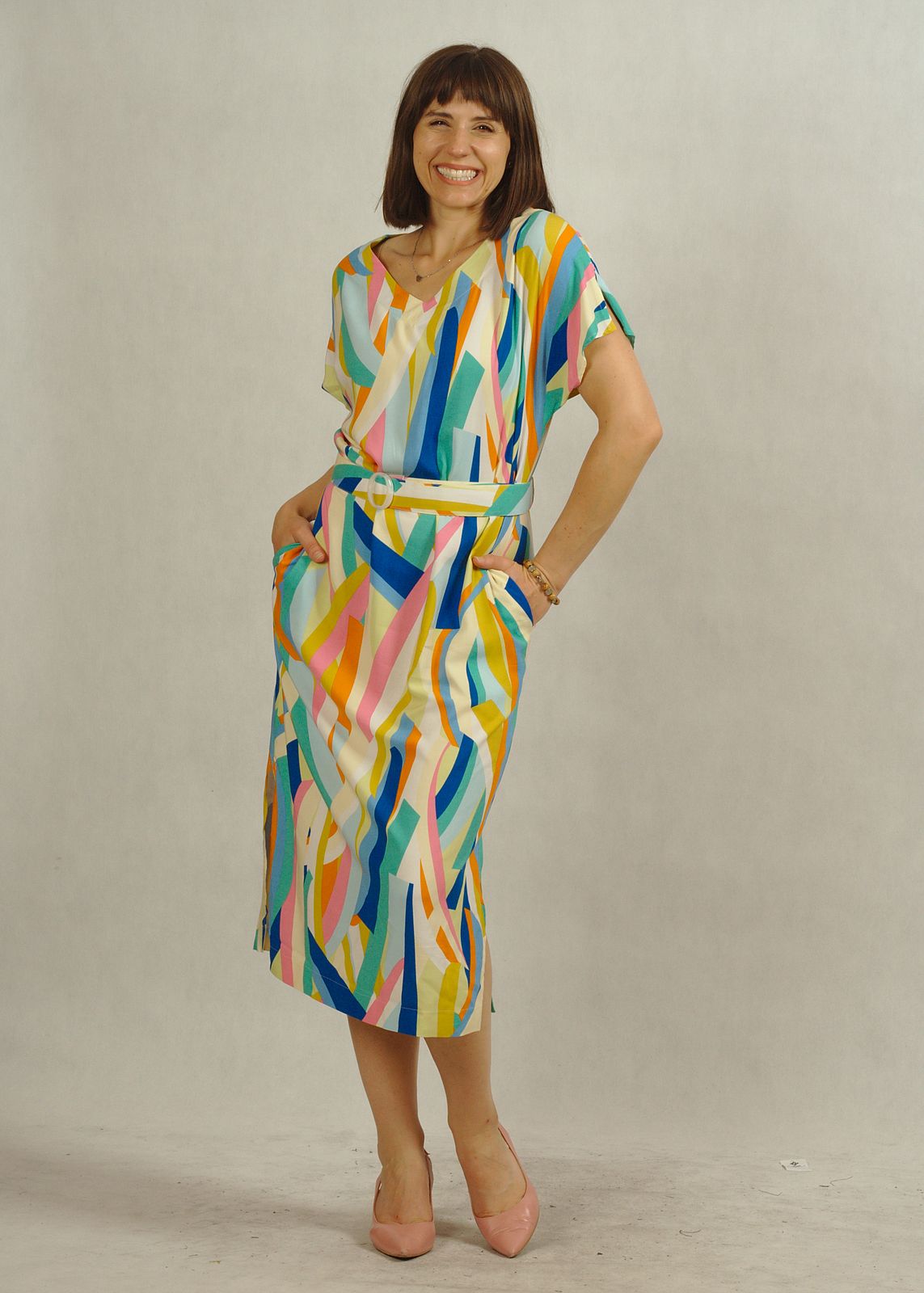Sukienka midi we wzory, w tym kolorowe i wielobarwne printy, świetnie wpisuje się w wakacyjny klimat.
