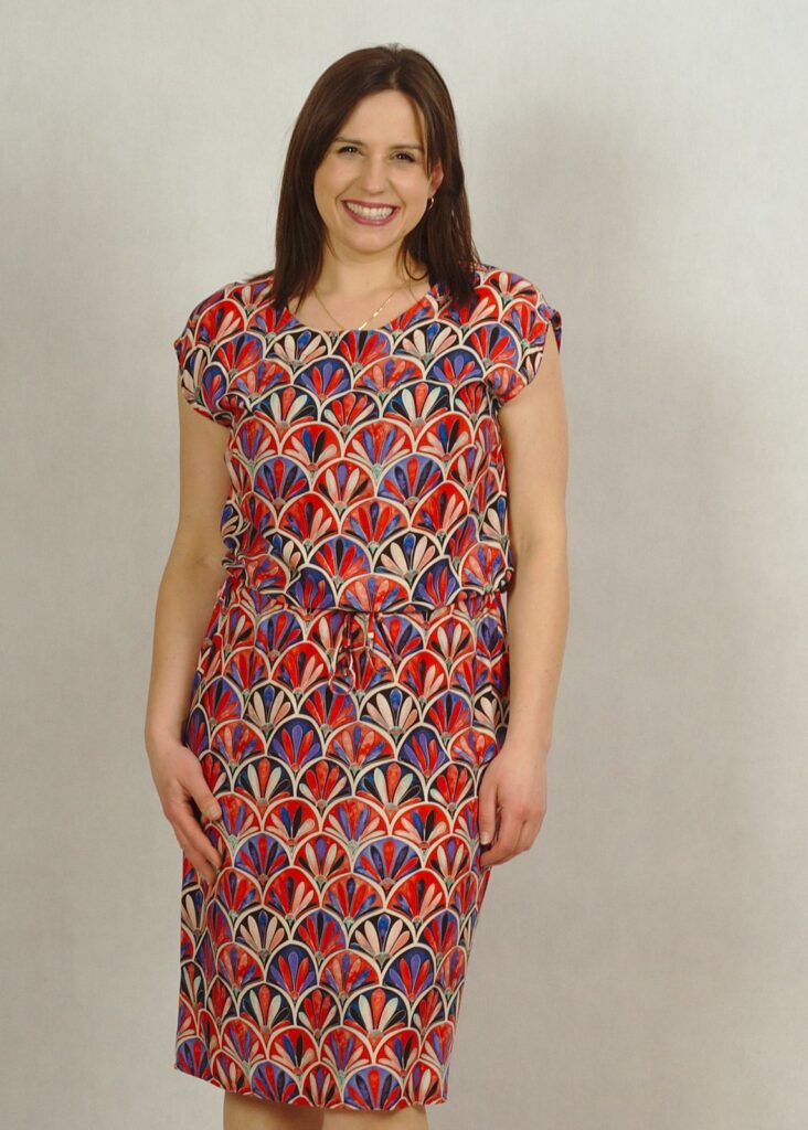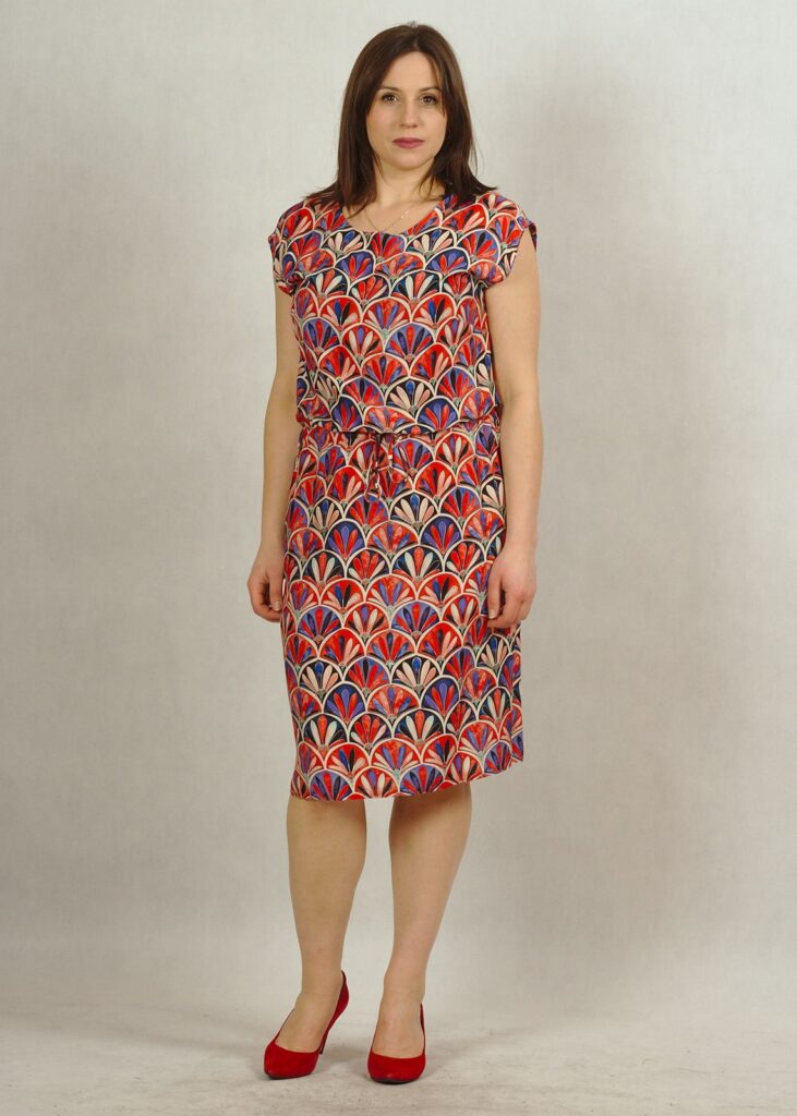 Sukienka wiosenno- letnia, lekko ściągana w talii – pięknie podkreśla atuty sylwetki.