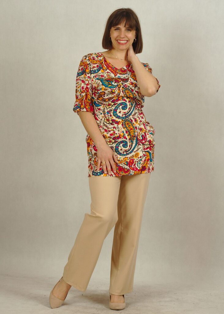 Tunika świetnie komponuje się do spodni, możesz użyć paska (tak jak na zdjęciach), a jeśli tego nie lubisz – noś ją swobodnie.