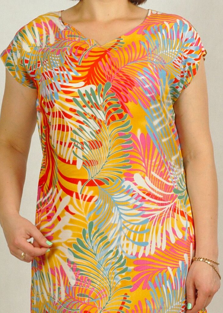 Sukienka, która robi wrażenie, przede wszystkim ze względu na swoje wyjątkowe kolory i wzory.