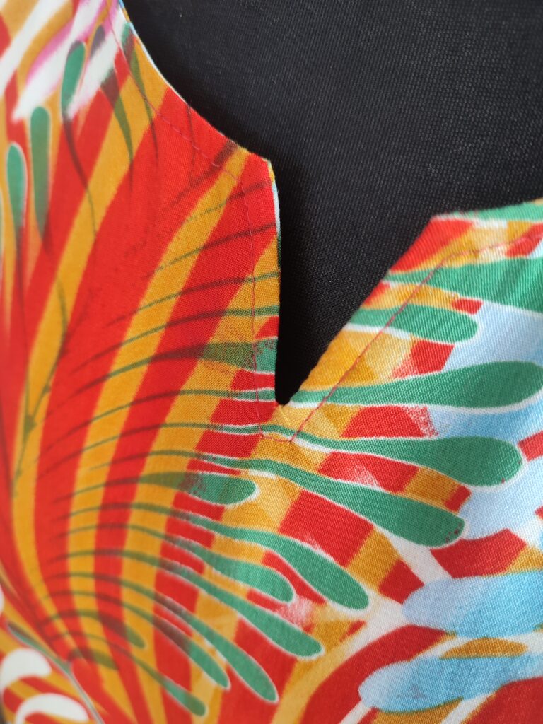 Z dbałością o szczegóły, wypracowany dekolt w serek z drobną łezką