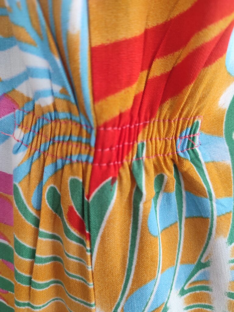 Delikatne gumki wszyte w talię, podkreślają ją bez potrzeby zakładania paska.