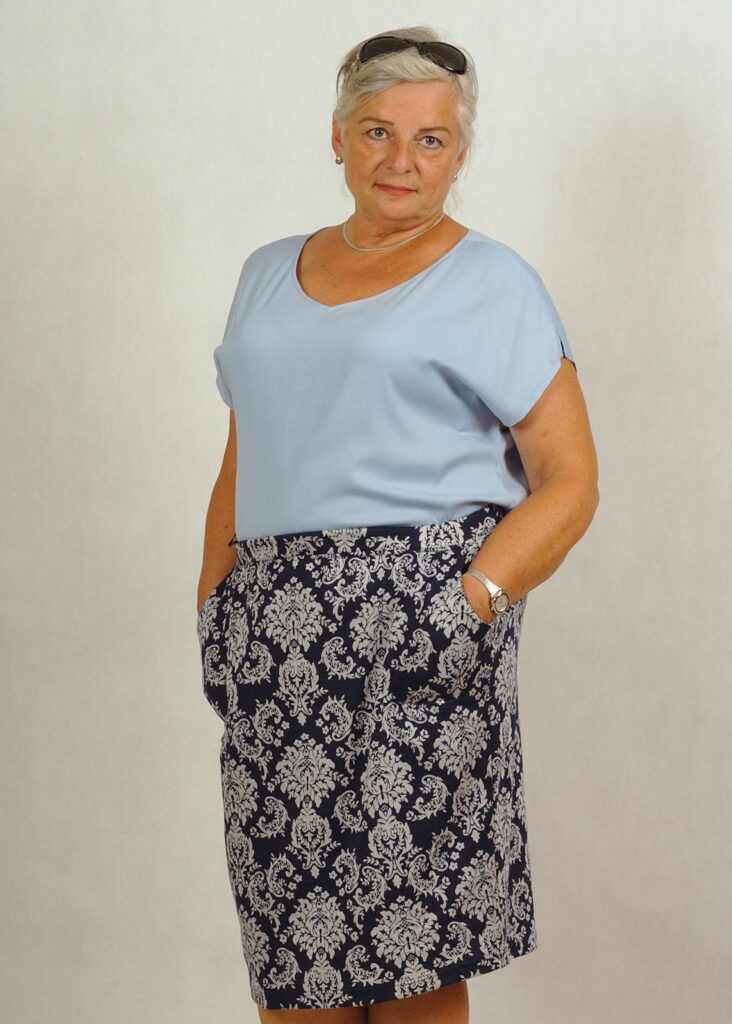Długość bluzki dla rozmiaru M – 60 cm; dla rozmiaru 4XL – 65 cm.
