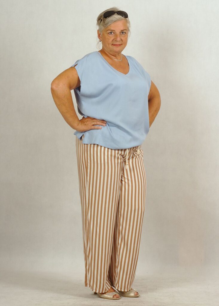Modelka ma 164 cm wzrostu i nosi rozmiar 2XL.