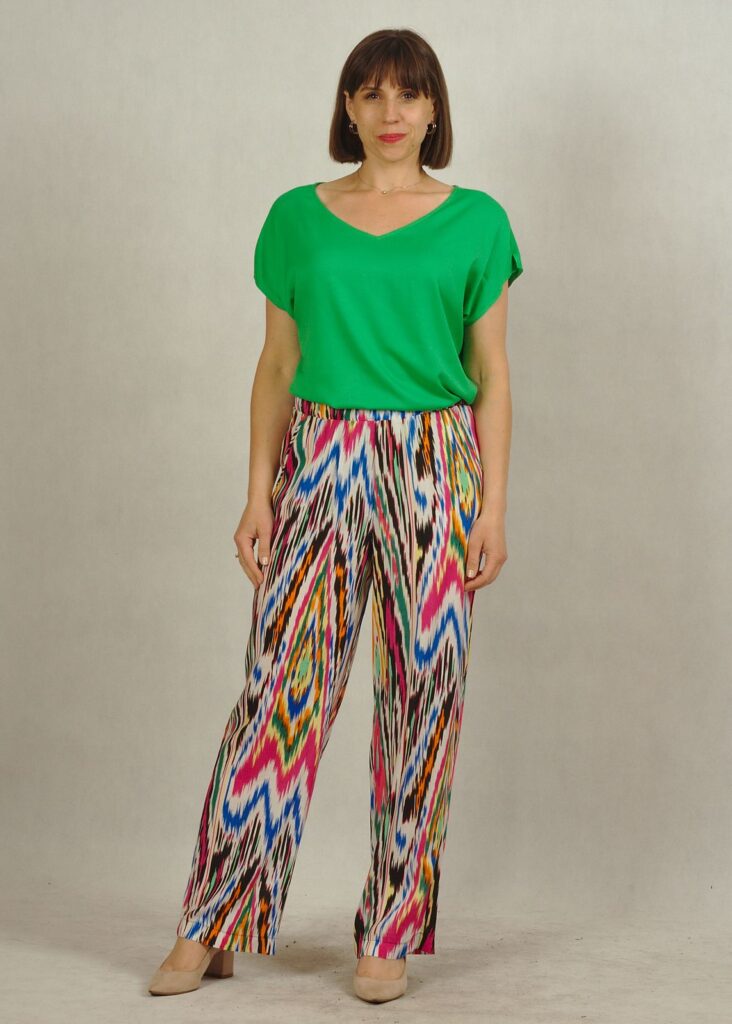 Dopasuj sobie wielokolorowe spodnie ze zdjęcia: https://damana.pl/produkt/wielokolorowe-lekkie-spodnie-wiskozowe-z-szeroka-nogawka-plus-size/