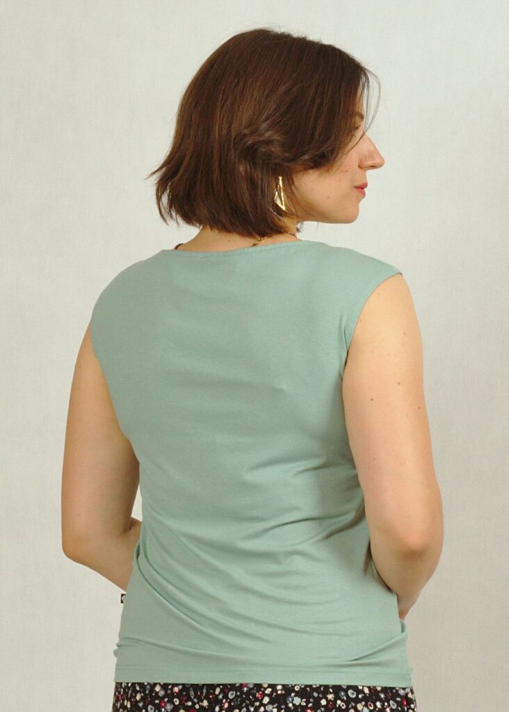 Piękny dekolt w serek i szerokie ramiączka idealnie eksponują okolice szyi 🙂