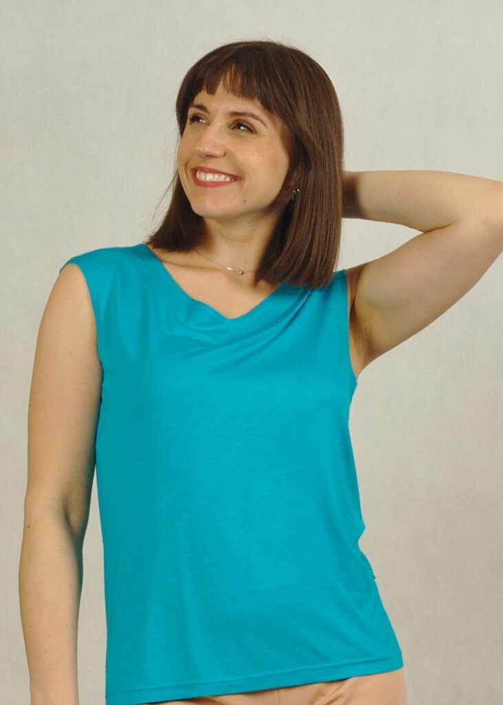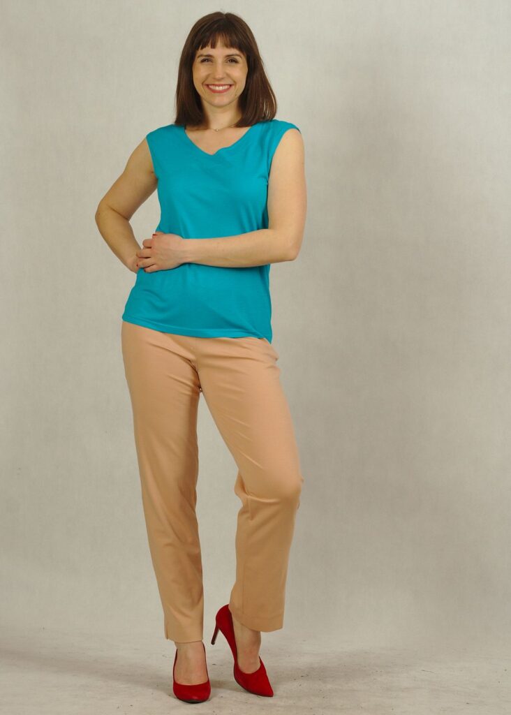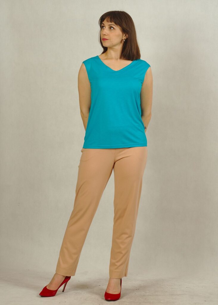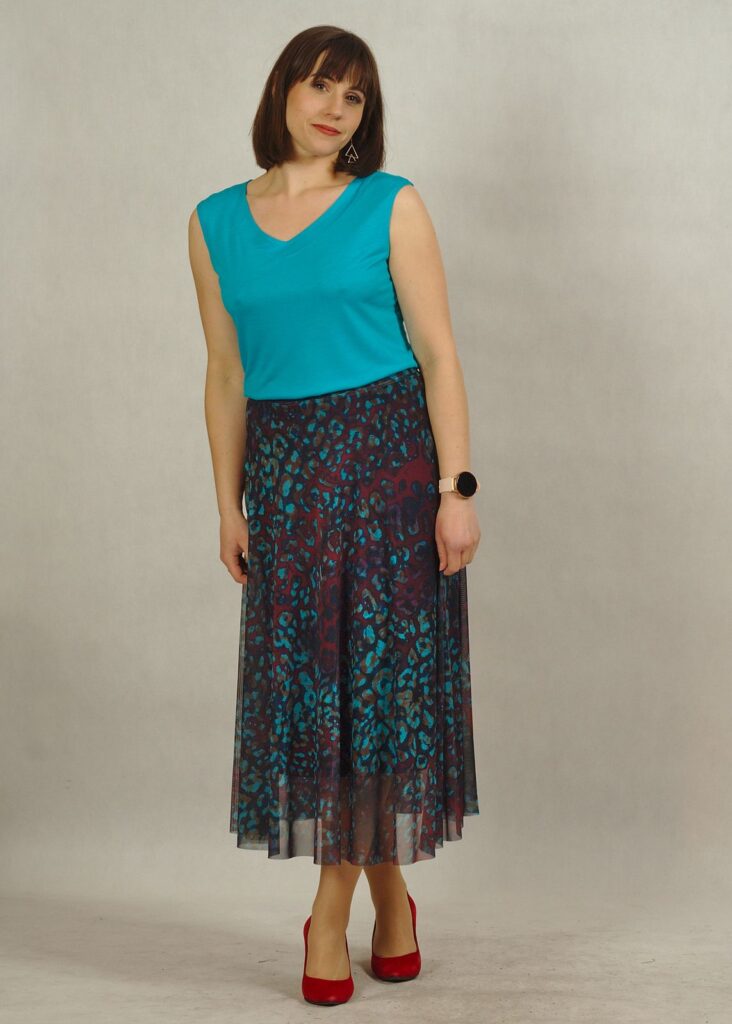 Nasz top to bardzo precyzyjnie odszyta propozycja, która doskonale sprawdzi się zarówno do spódnic, jak i do spodni.