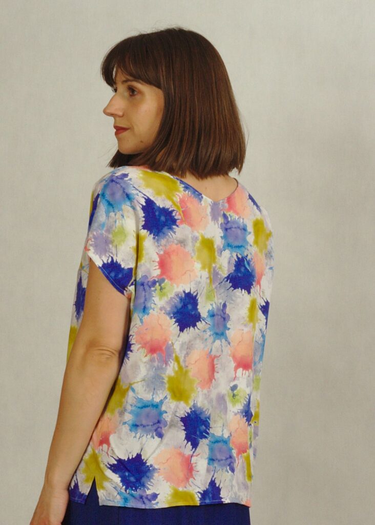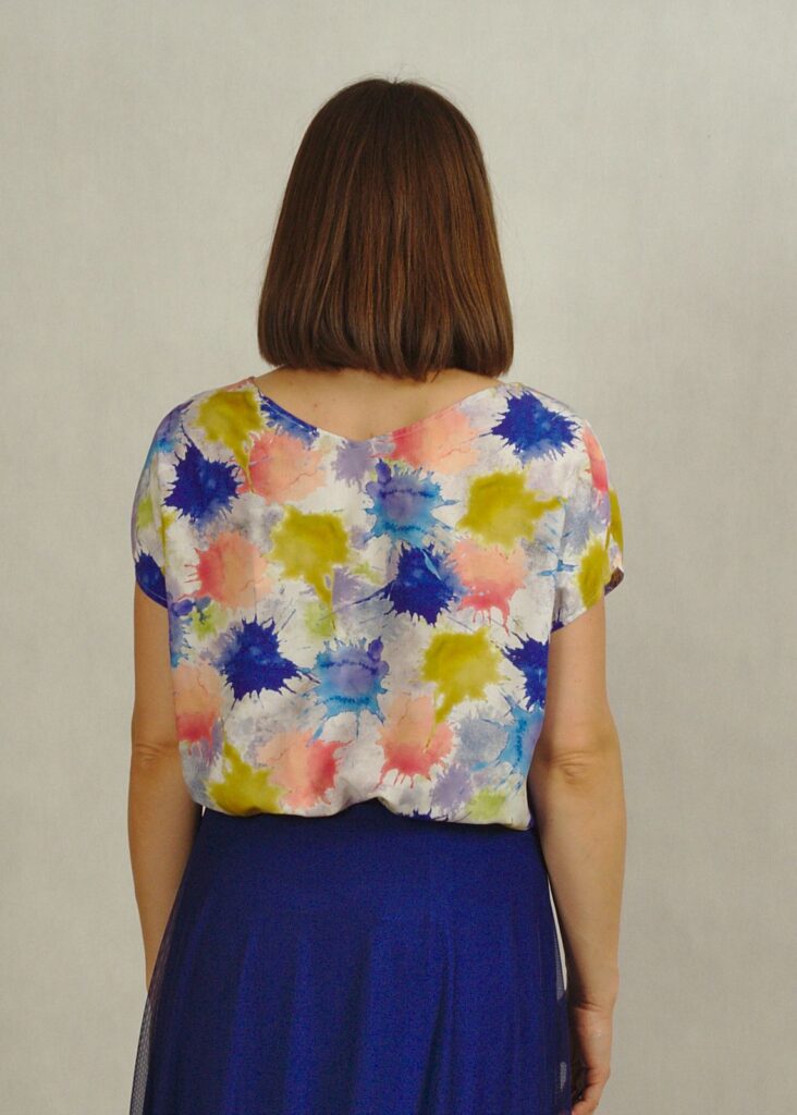 Letni top z wiskozy w chabrowe wzory to idealna propozycja na ciepłe dni.