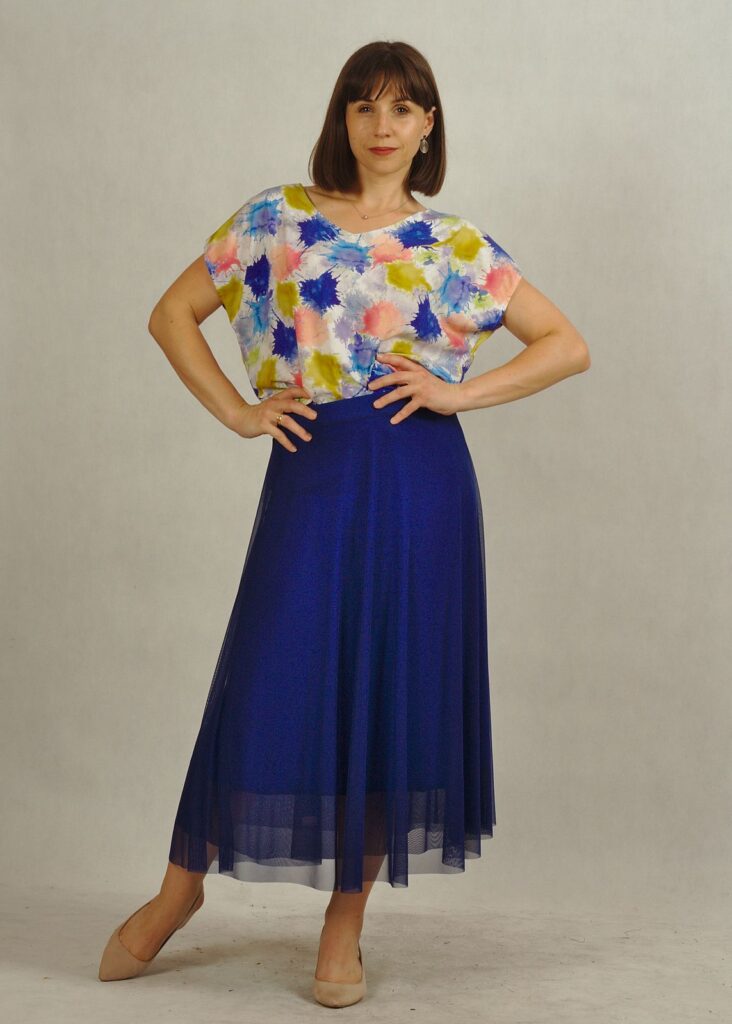 Wybierz do tej bluzki spódnicę z siatki, taką, jak na zdjeciach: https://damana.pl/produkt/spodnica-z-siatki-z-podszewka-wiskozowa-chabrowa-597/