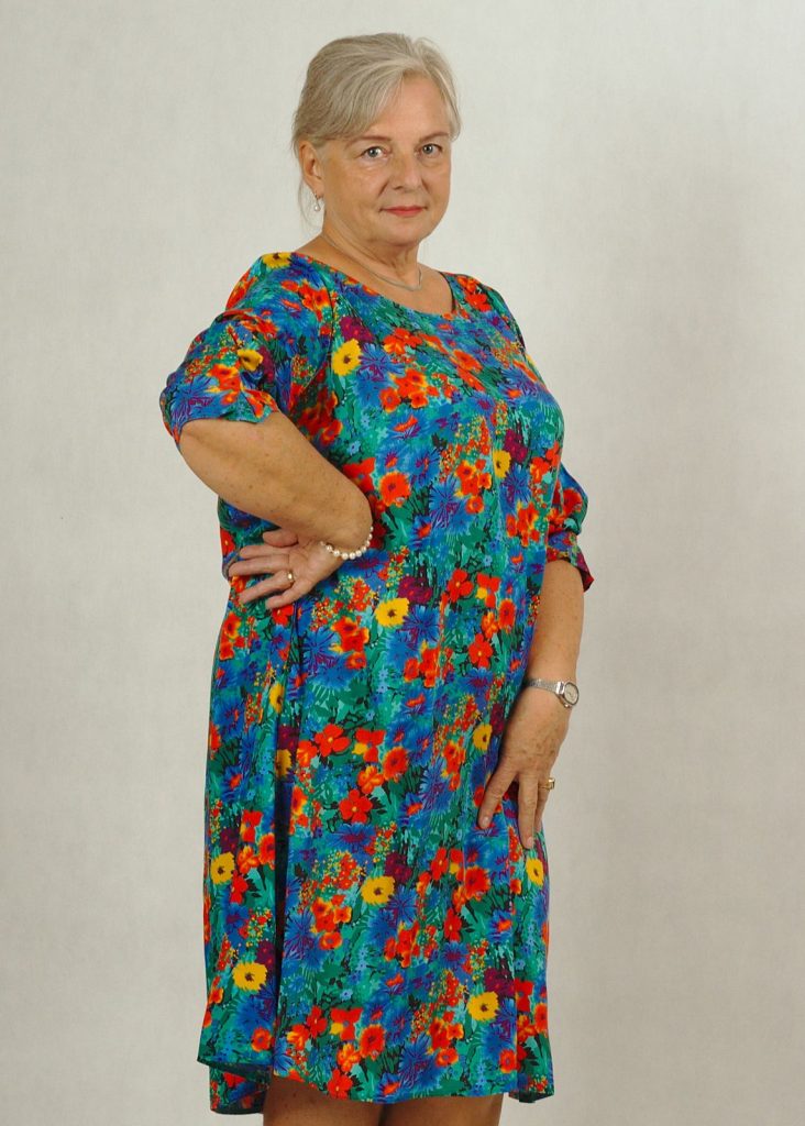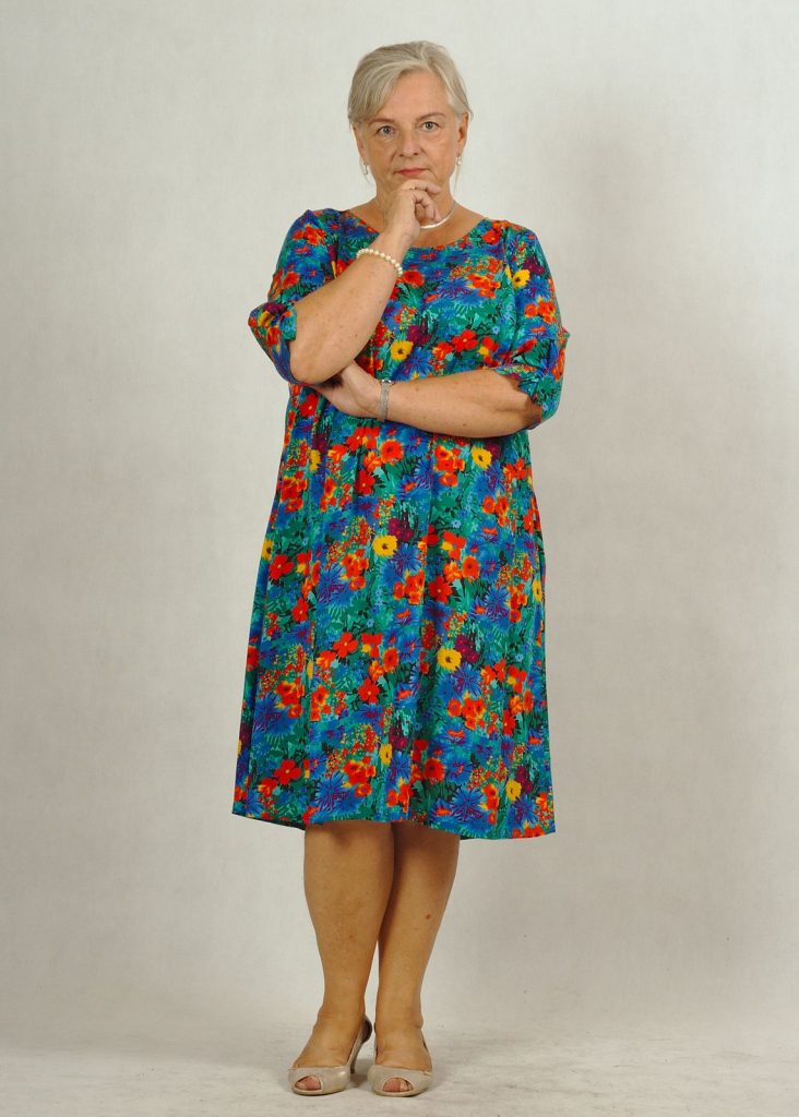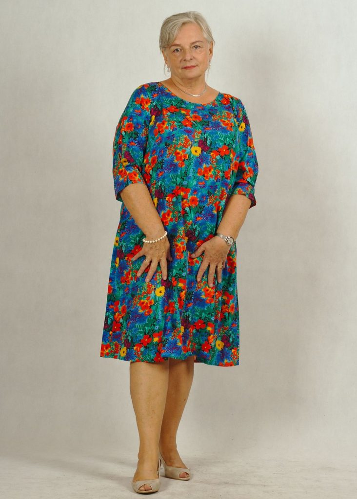 Wielokolorowa sukienka w kształcie litery A to wyjątkowa propozycja od Damy.