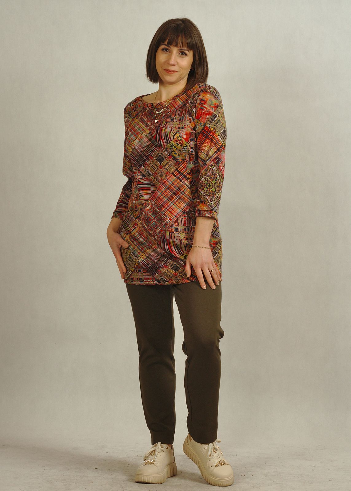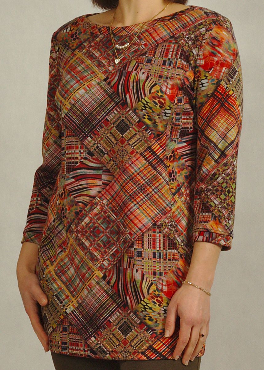 Tunika z dzianiny w kolorystyce czerwonej z delikatnym patchworkiem.
