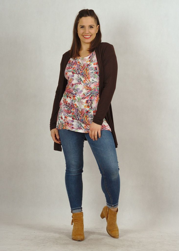 Bluzka jest dostępna w dwóch wersjach kolorystycznych: czerwieni na jasnym tle lub zieleni na jasnym tle.