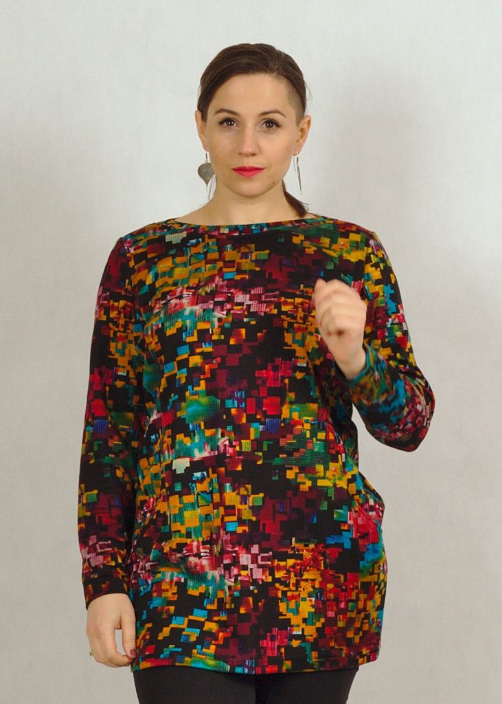Tunika ma prosty, długi rękaw.