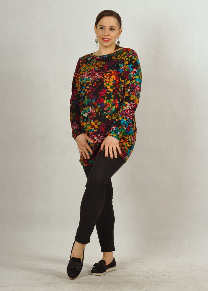 Tunika doskonale sprawdzi się do dżinsów, materiałowych spodni lub prostych legginsów.