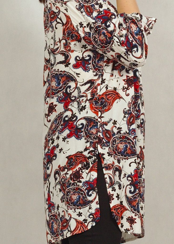 Tunika ma czerwony turecki wzór, na klasycznym białym tle.