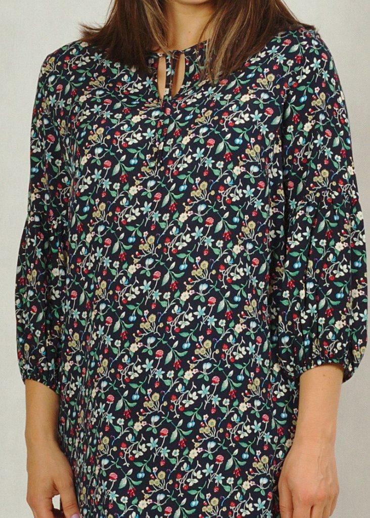 Tunika w kwiatki z delikatnym wiązaniem przy dekolcie /446/