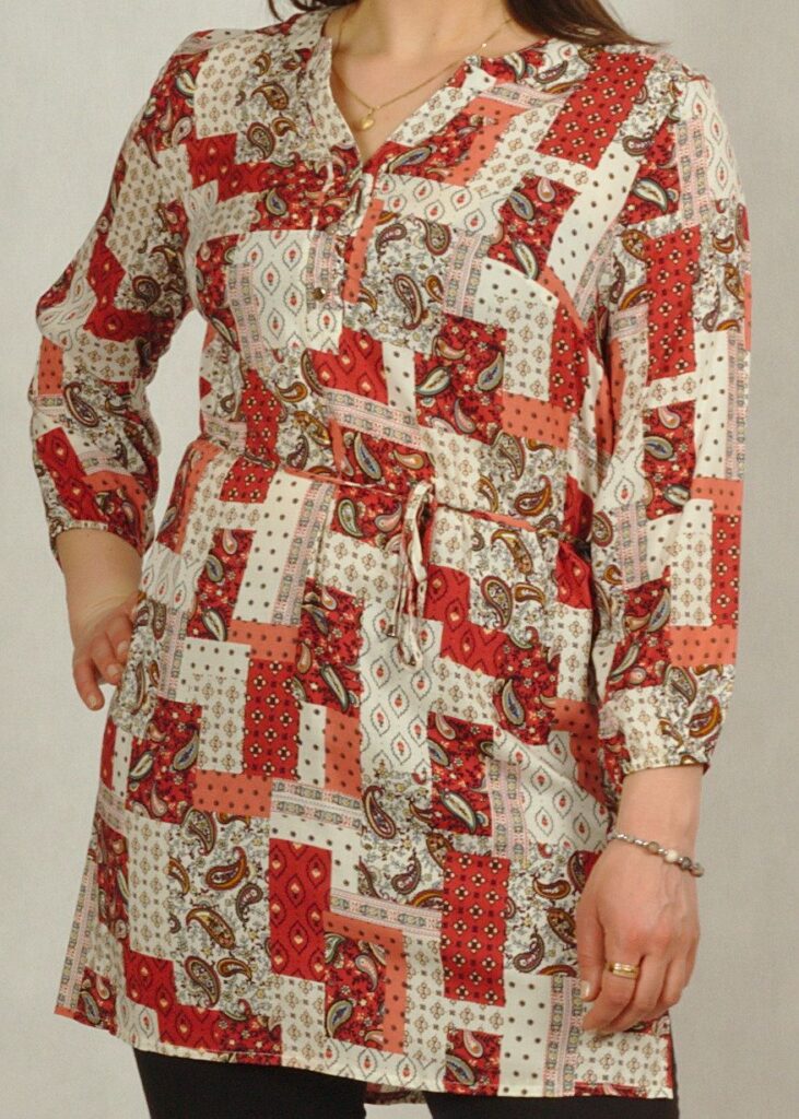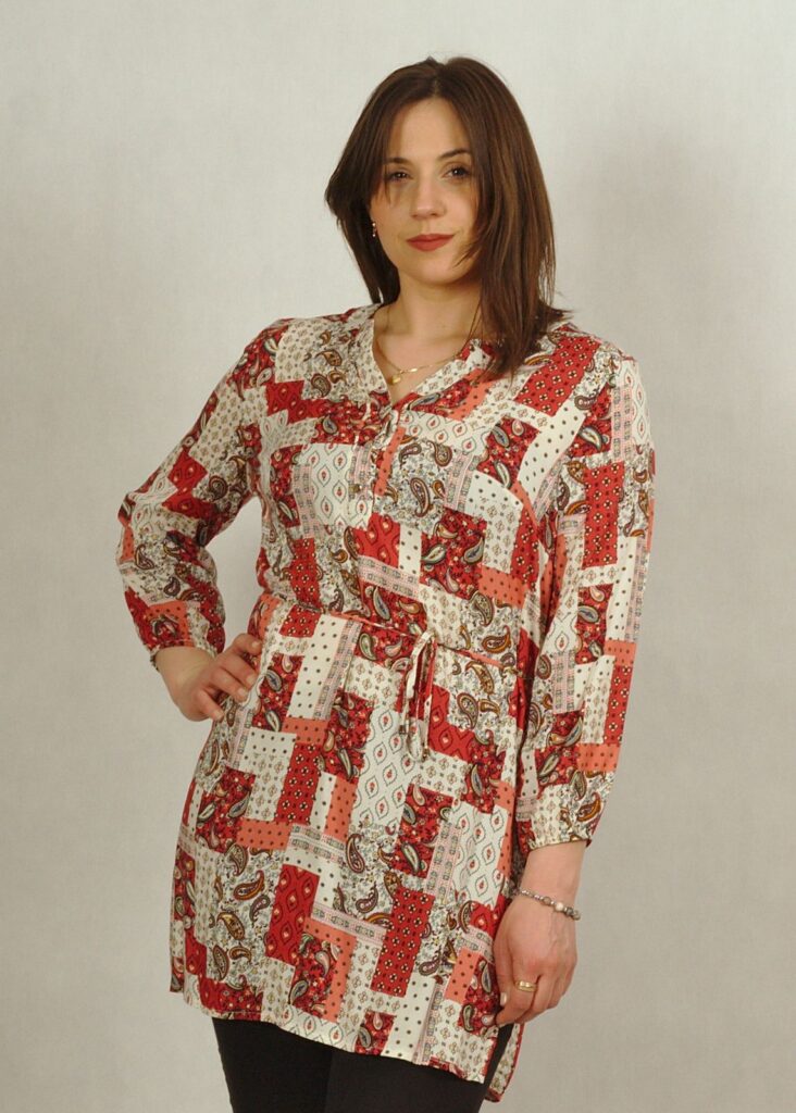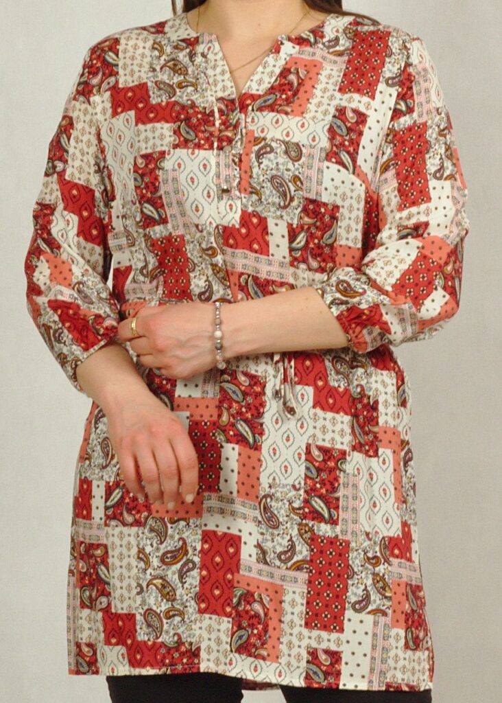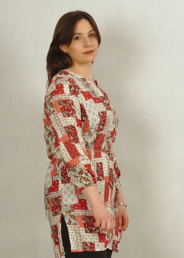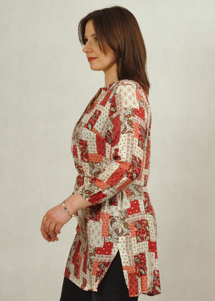 Przepiękna tunika wiskozowa z nadrukiem paisley, czyli popularny motyw wzoru, nadaje jej wyjątkowego charakteru i oryginalności.
