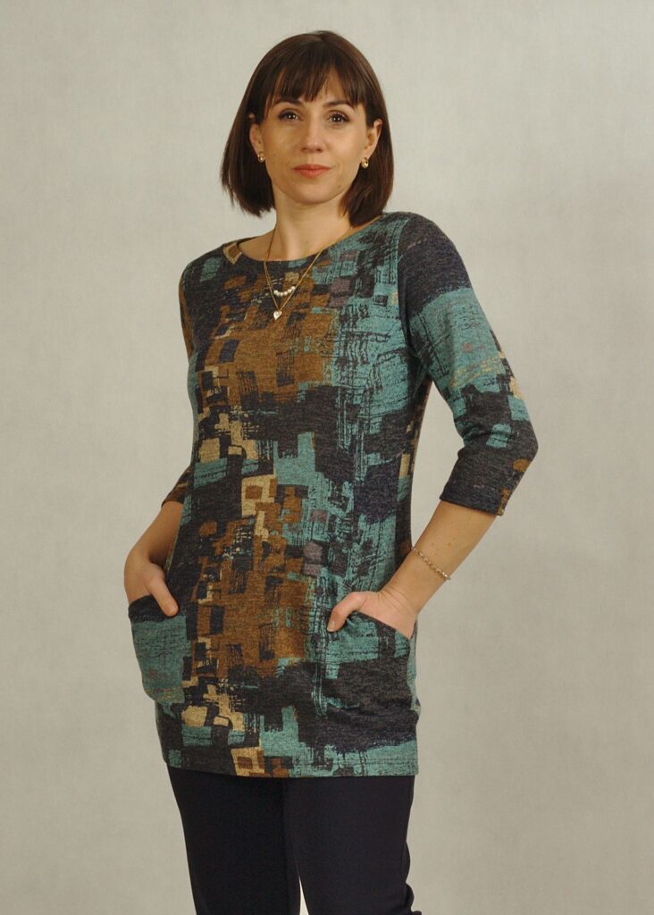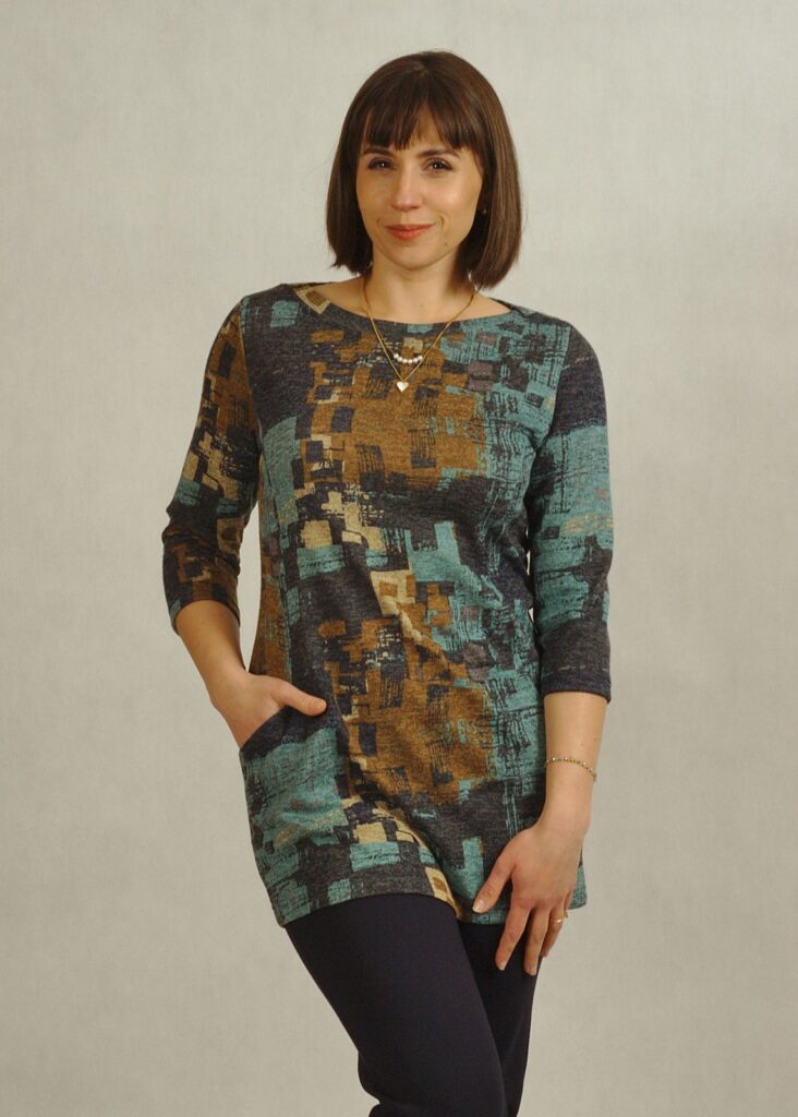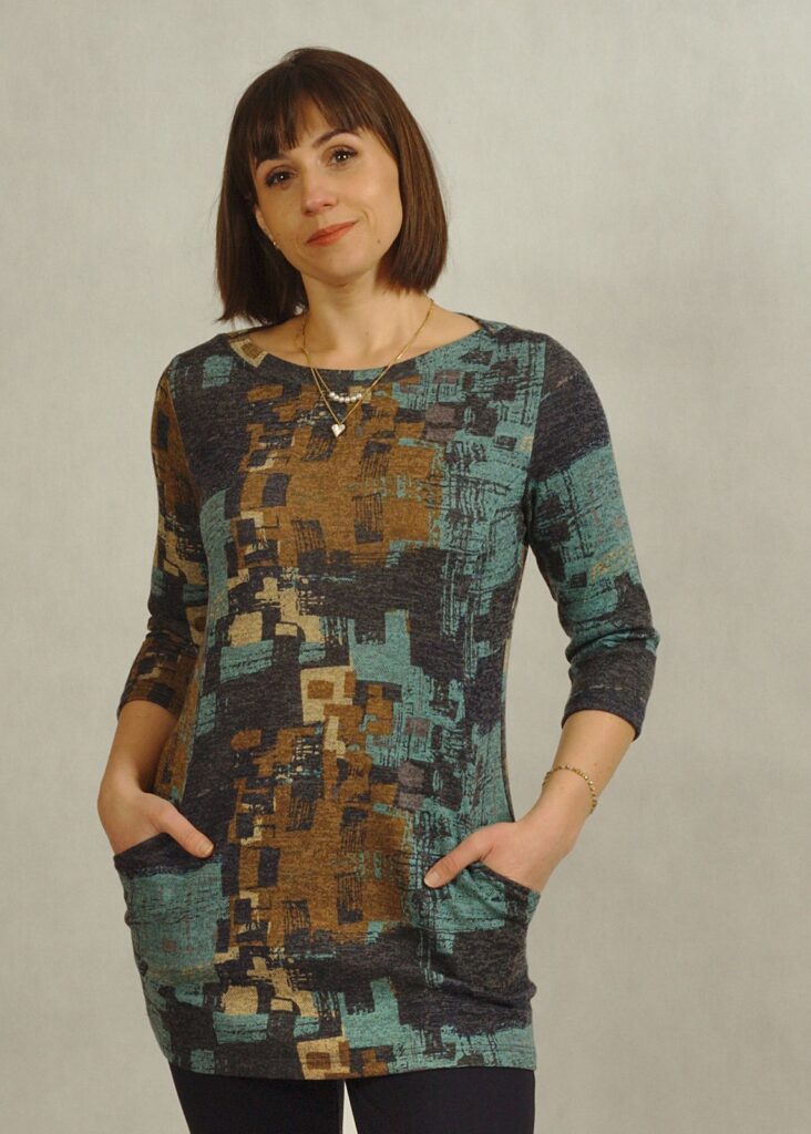 Tunika ciepła wykonana z przyjemnej dzianiny wiskozowej.