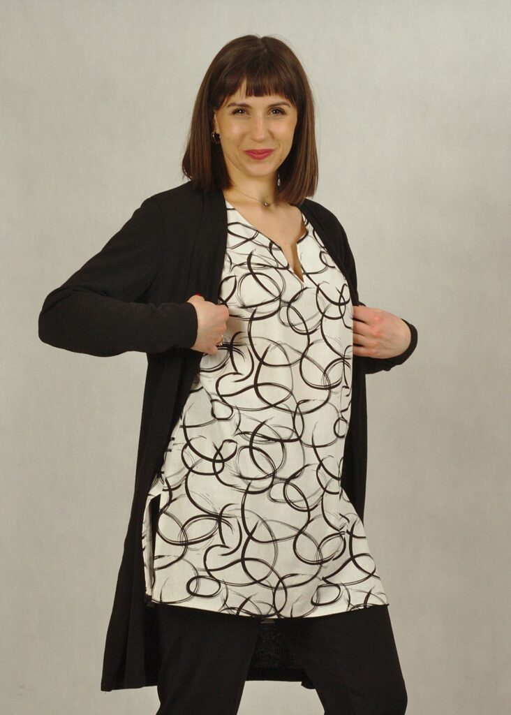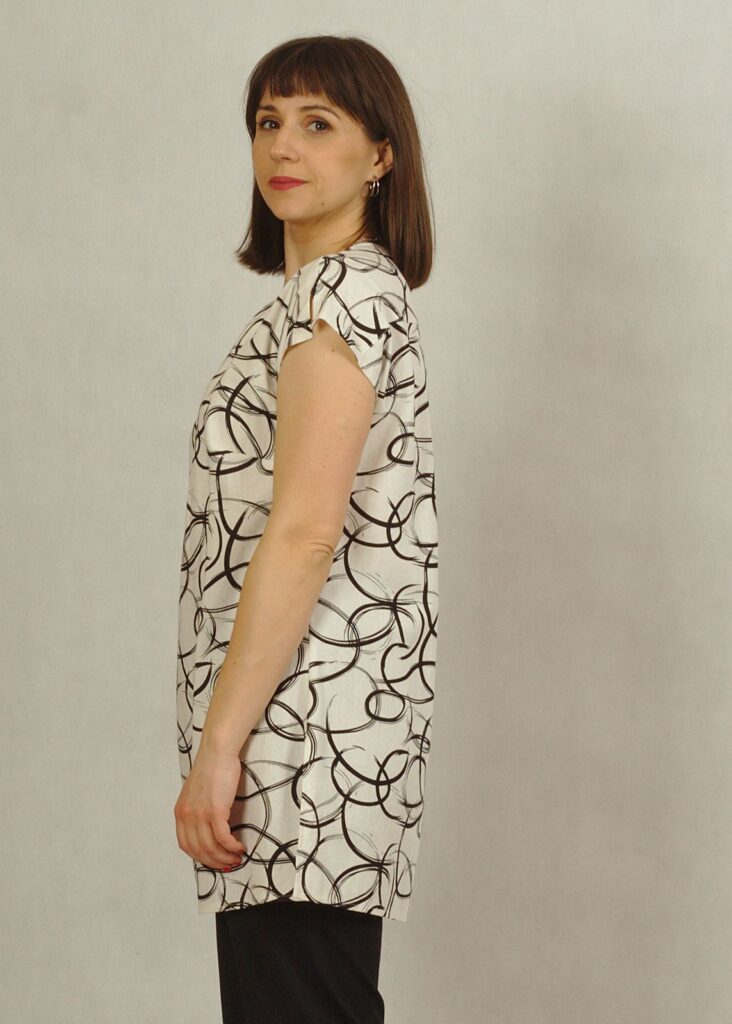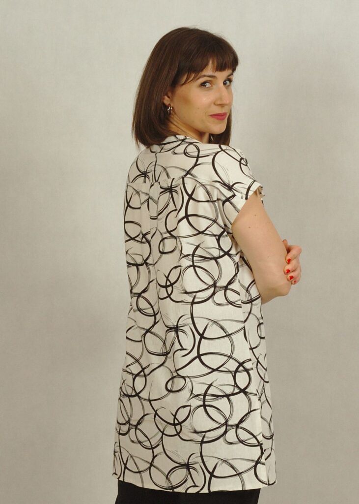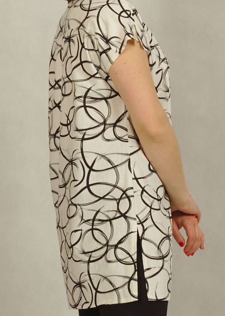 Świetna propozycja na letnie dni – wybierz tunikę białą w czarne (wstążki) i poczuj się wyjątkowo.