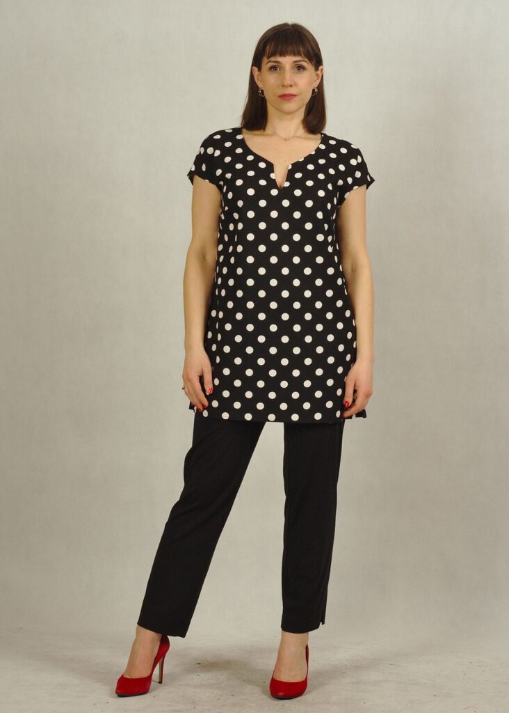 Świetna propozycja na letnie dni – wybierz tunikę czarną w białe groszki i poczuj się jak dama.