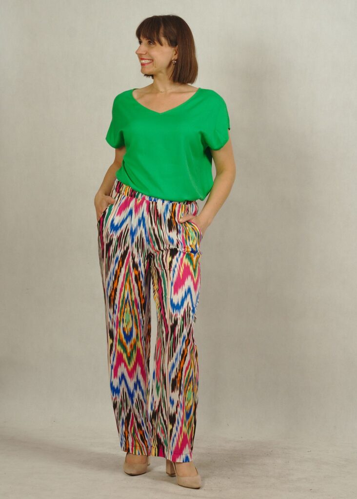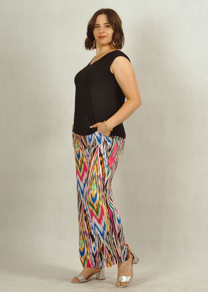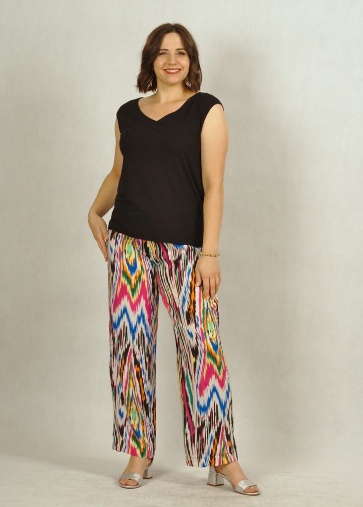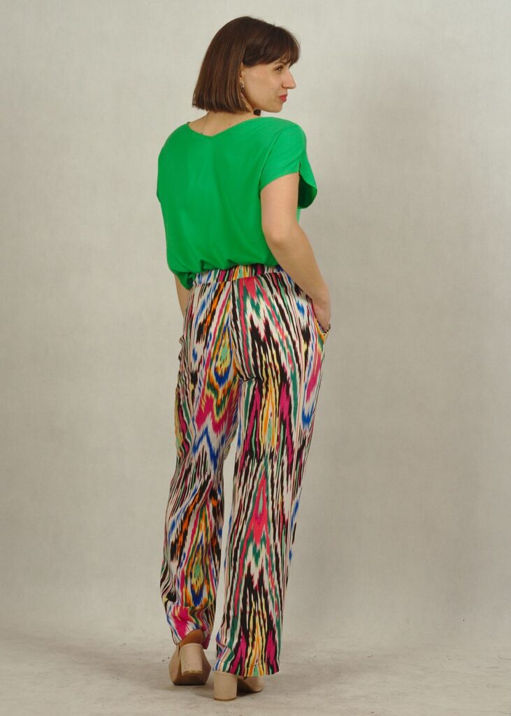 Wielokolorowe lekkie spodnie wiskozowe z szeroką nogawką plus size /789/