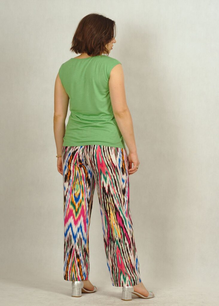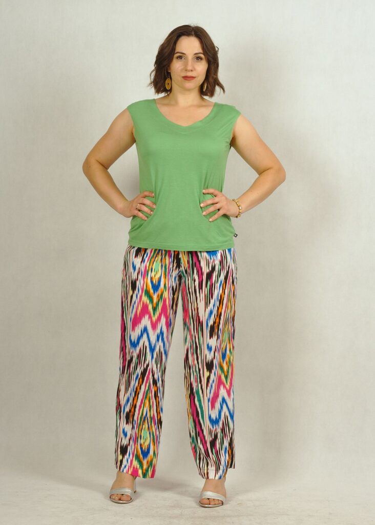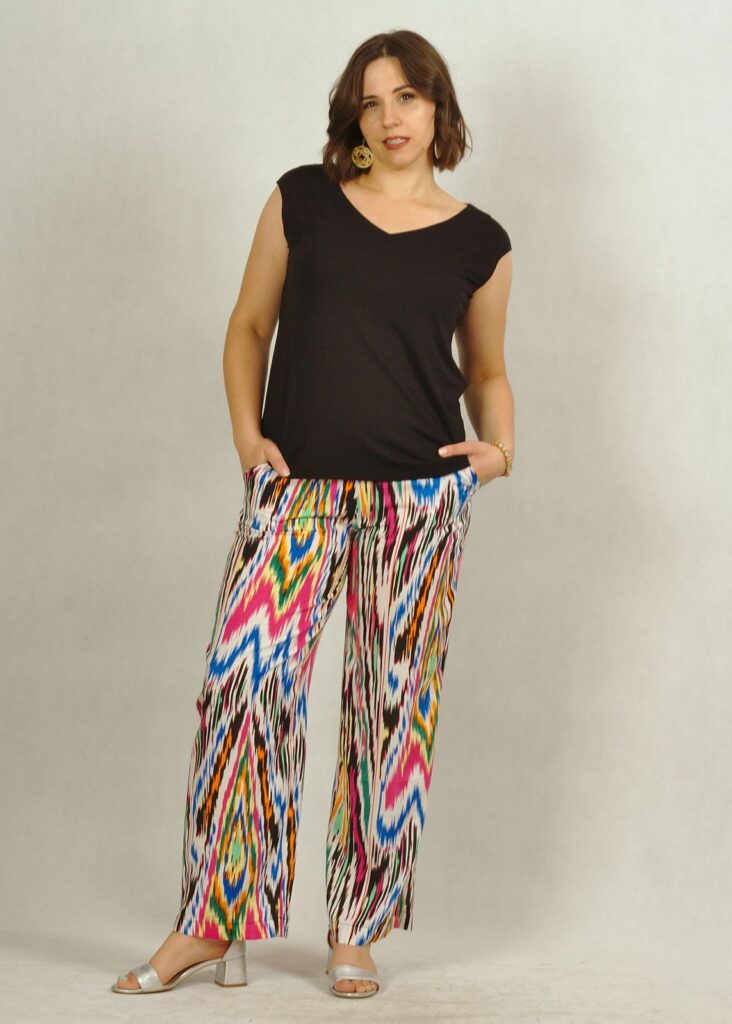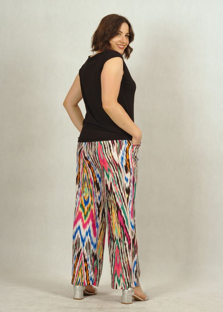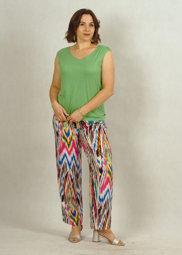 Wielokolorowe lekkie spodnie wiskozowe z szeroką nogawką plus size /789/