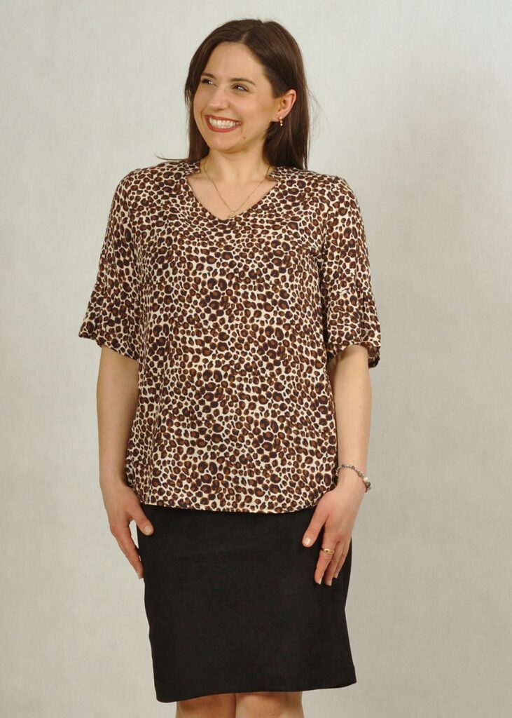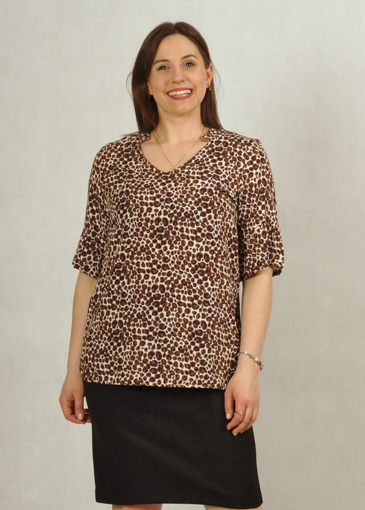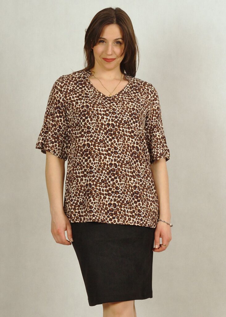 Wiskozowa bluzka z krótkim rękawem w panterkę brązowa /770/