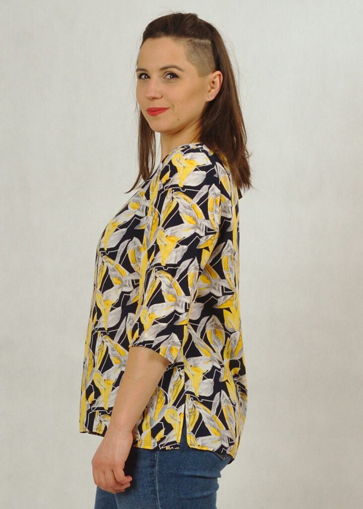 Bluzka uszyta została w rozmiarach standardowych oraz plus size.