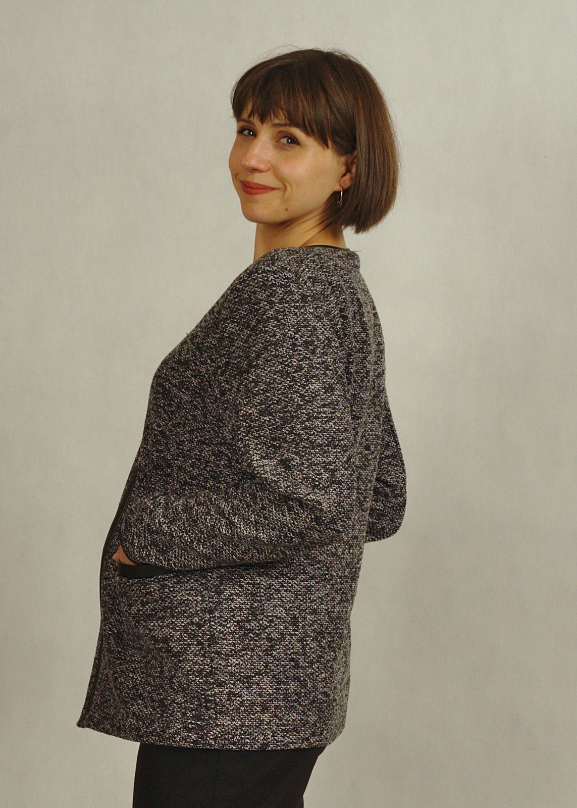 Żakiet ma świetny kolor – tzw. “pieprz i sól”*.