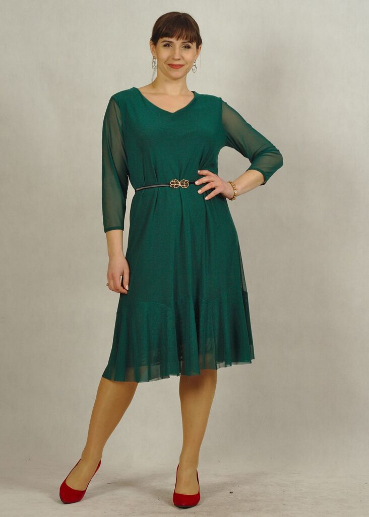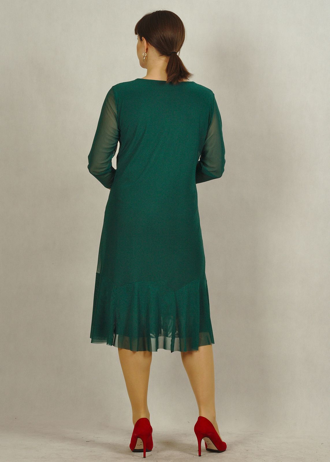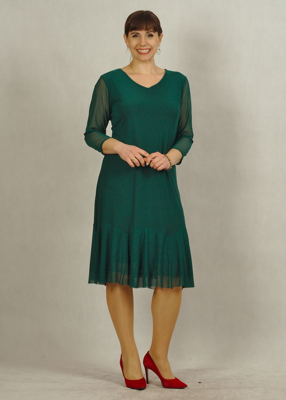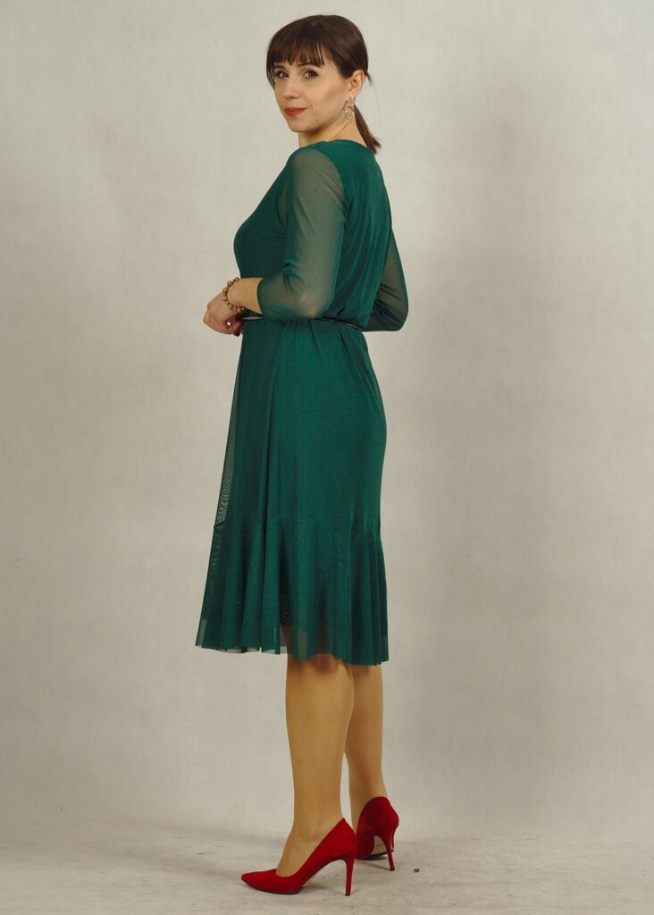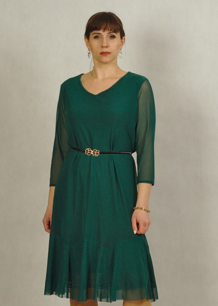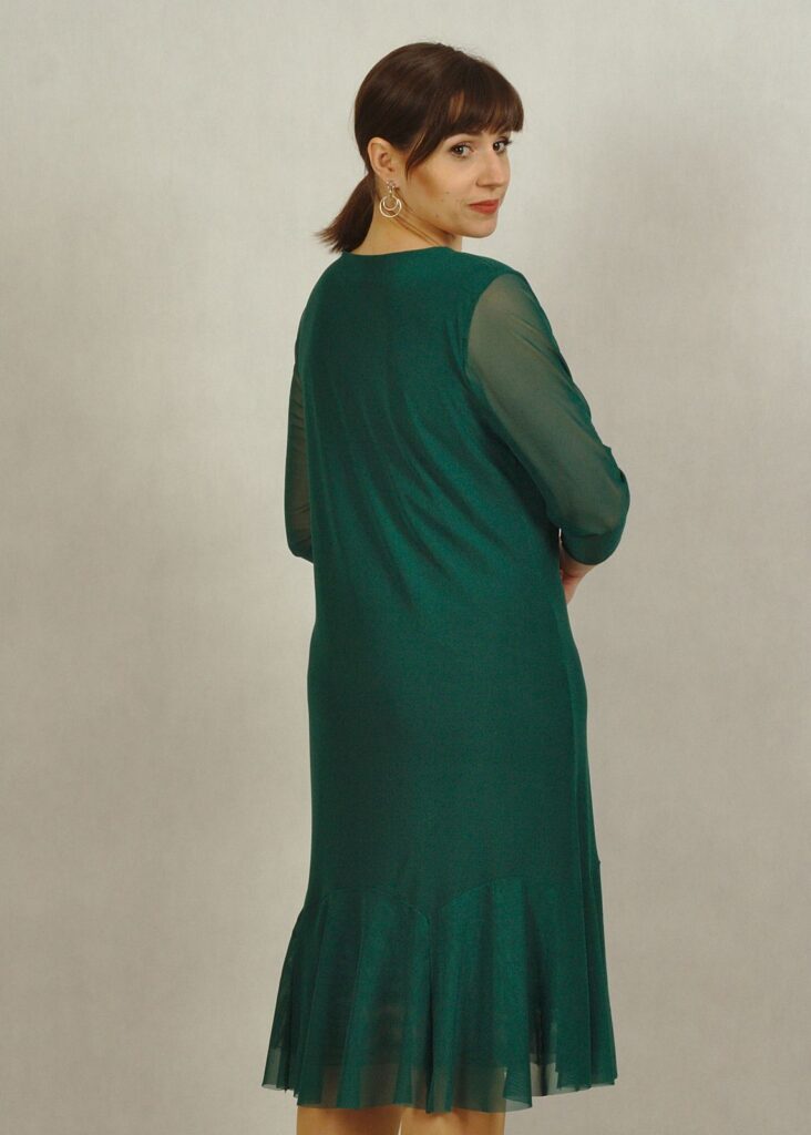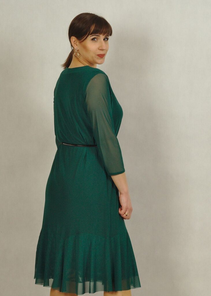 Zielona sukienka z eleganckiej siatki z falbanką /633/