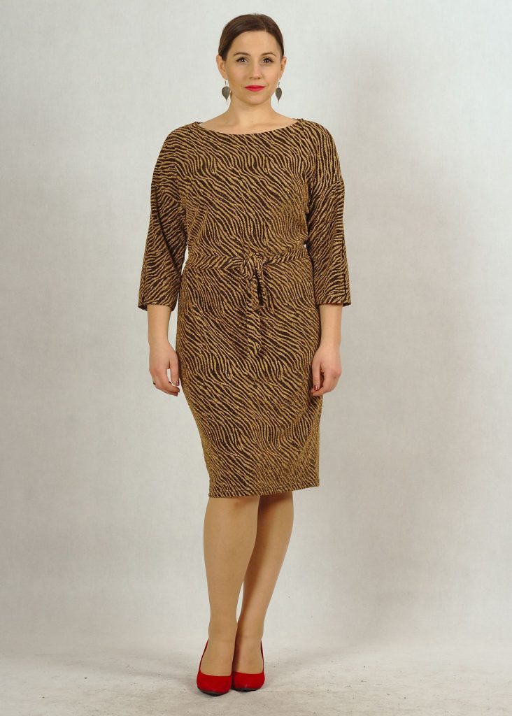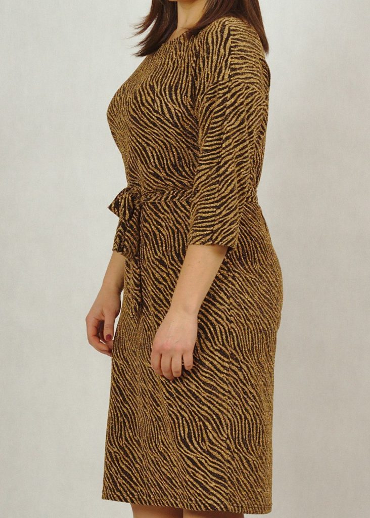 Dzianinowa, zmysłowa sukienka z błyskiem w kolorze złotym lub srebrnym, w bardzo modny zwierzęcy print.