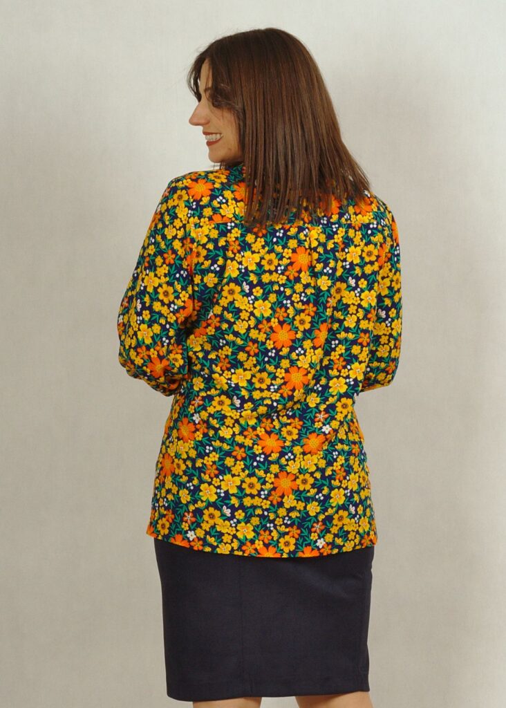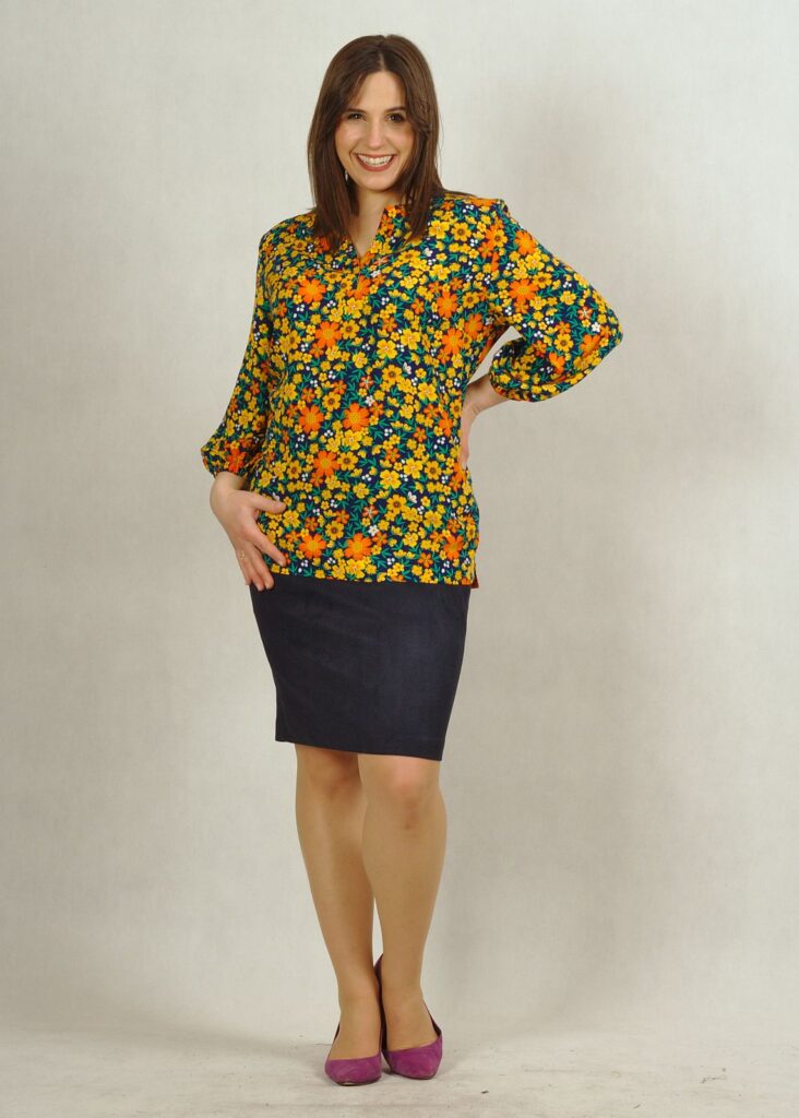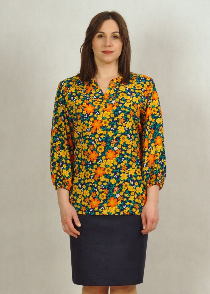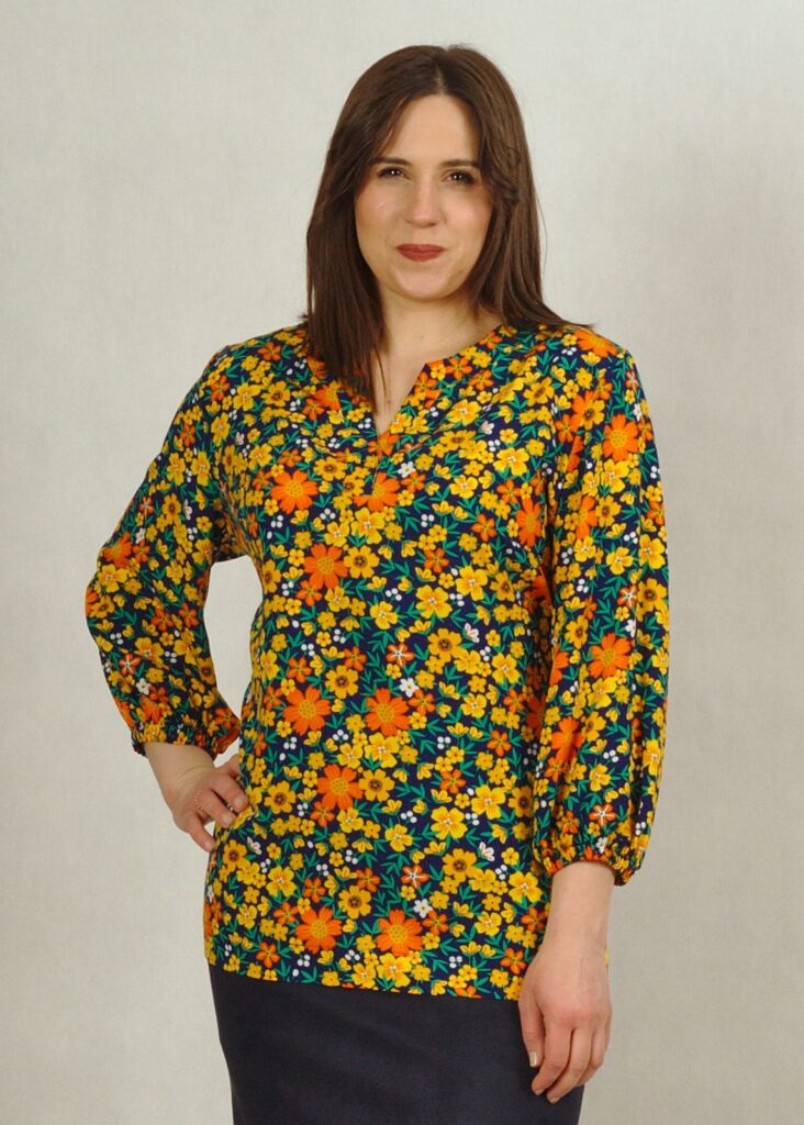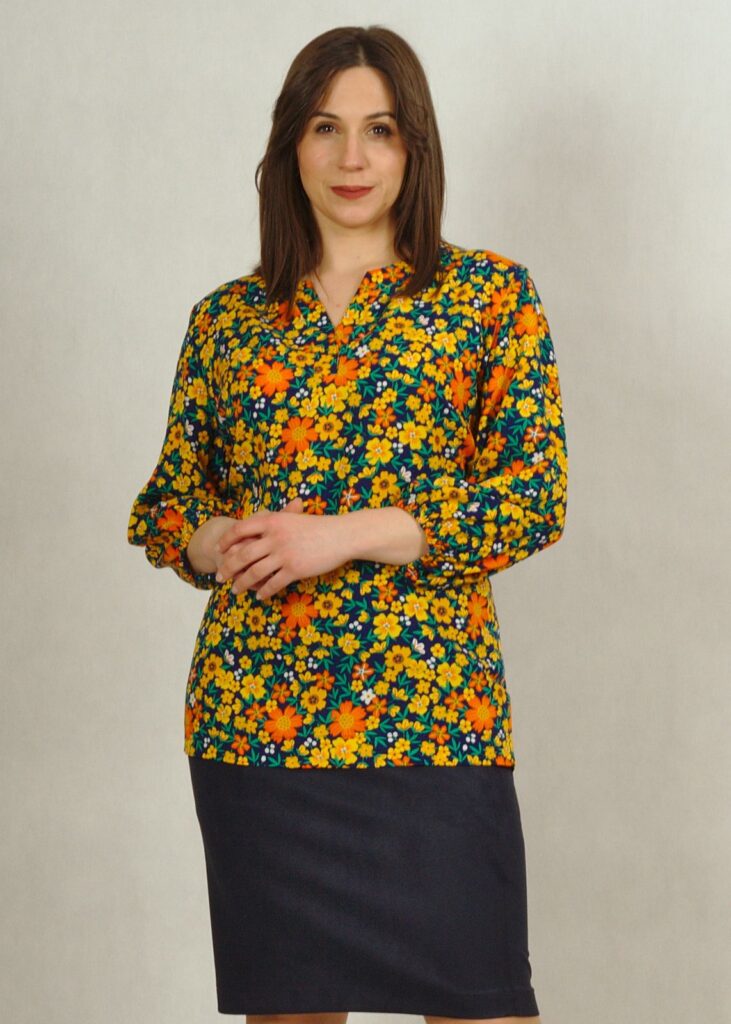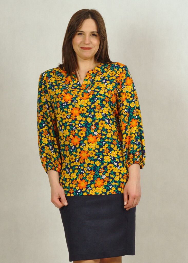 Żółta* bluzka z wiskozy w kwiatki to doskonały wybór na ciepłe, wiosenne dni.
